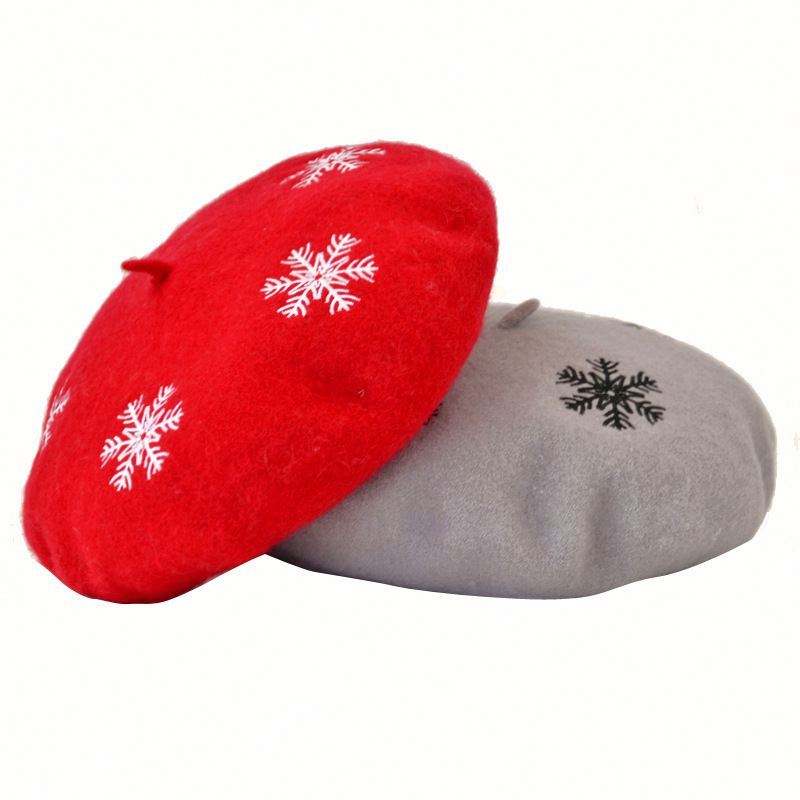 Boina Francesa con Bordado Personalizado de Copos de Nieve, Estilo Invernal, para Dibujantes y Artistas, Boina de Lana Vintage para Mujer