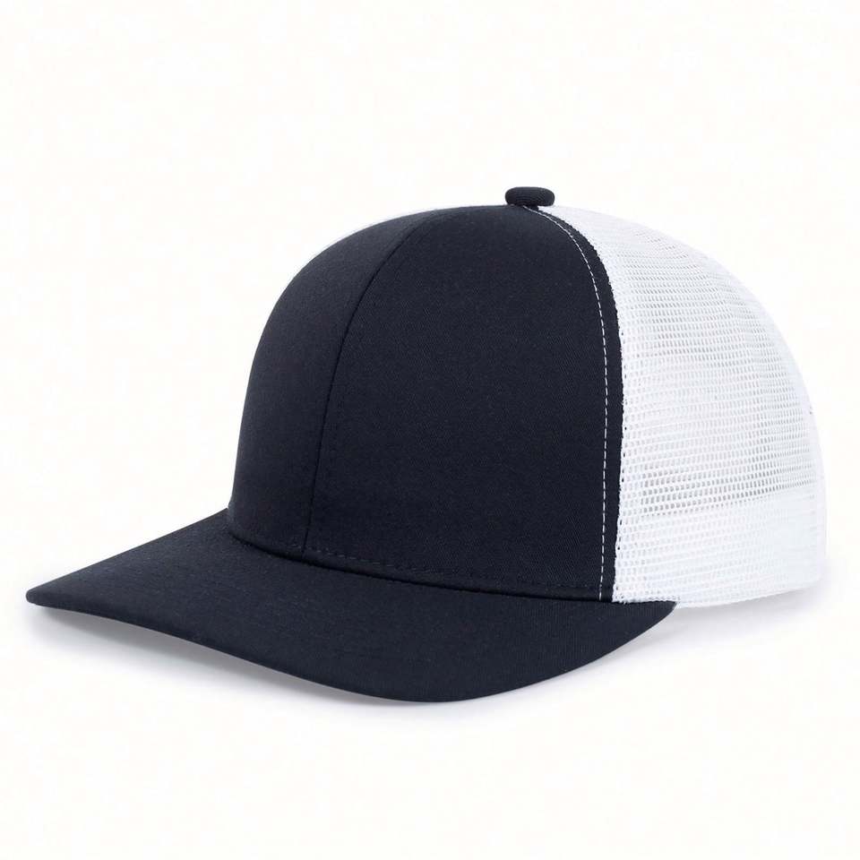 Gorra Trucker Personalizada con Parche de Cuero Bordado, Gorra de Malla con Visera Plana, Gorra de Béisbol con Cierre a Presión