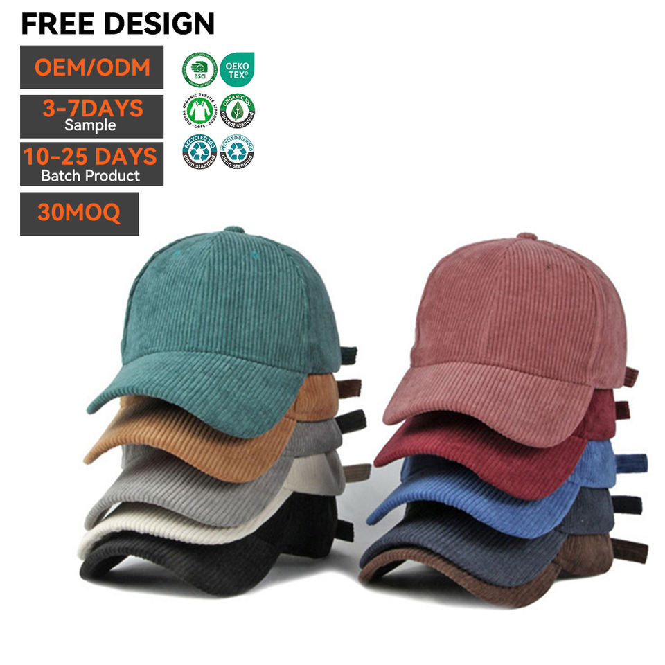 Gorra de Béisbol de Pana de 6 Paneles con Logotipo Bordado Personalizado, Ajustable, de Algodón de Alta Calidad, con Diseño de Letras Impresas, para Hombre, para las Cuatro Estaciones