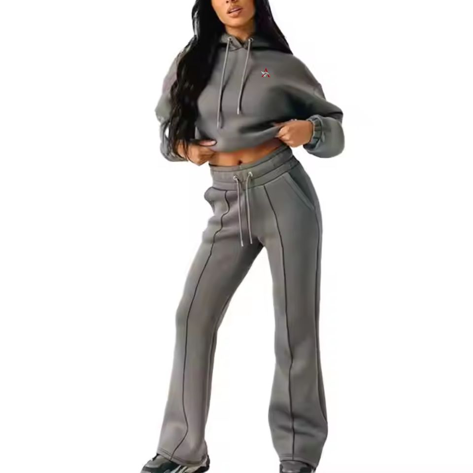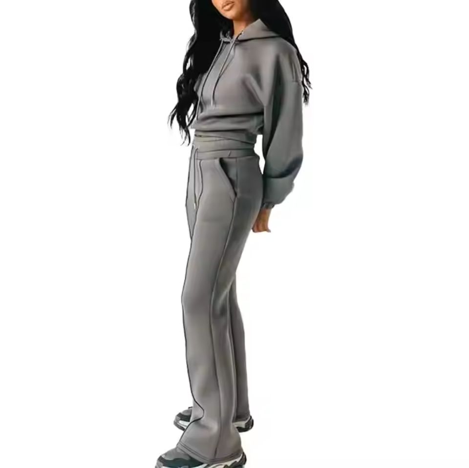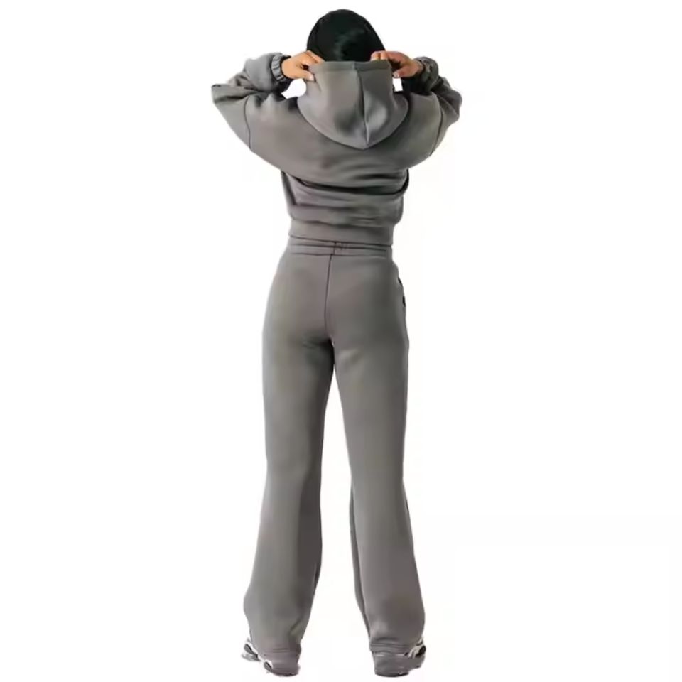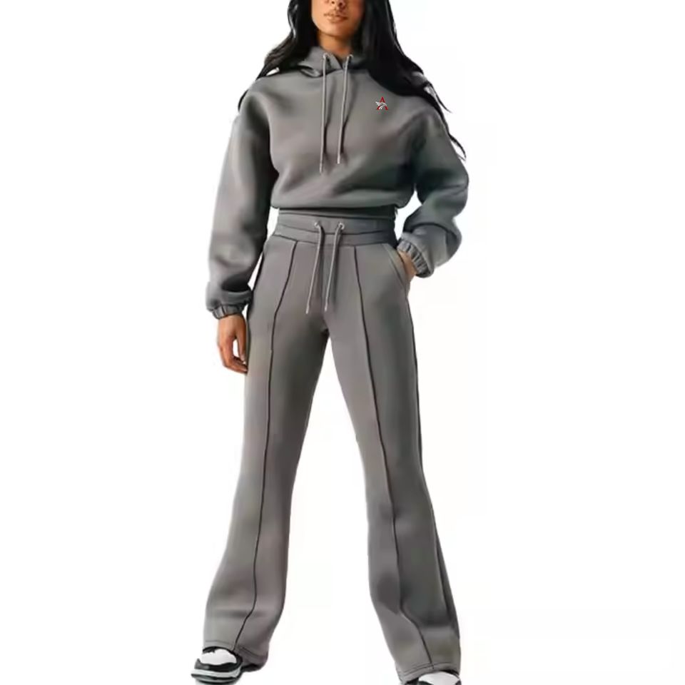 Conjunto de Sudadera con Capucha y Pantalones Deportivos de Cintura Alta con Logotipo Bordado Personalizado, Conjunto de 2 Piezas para Mujer