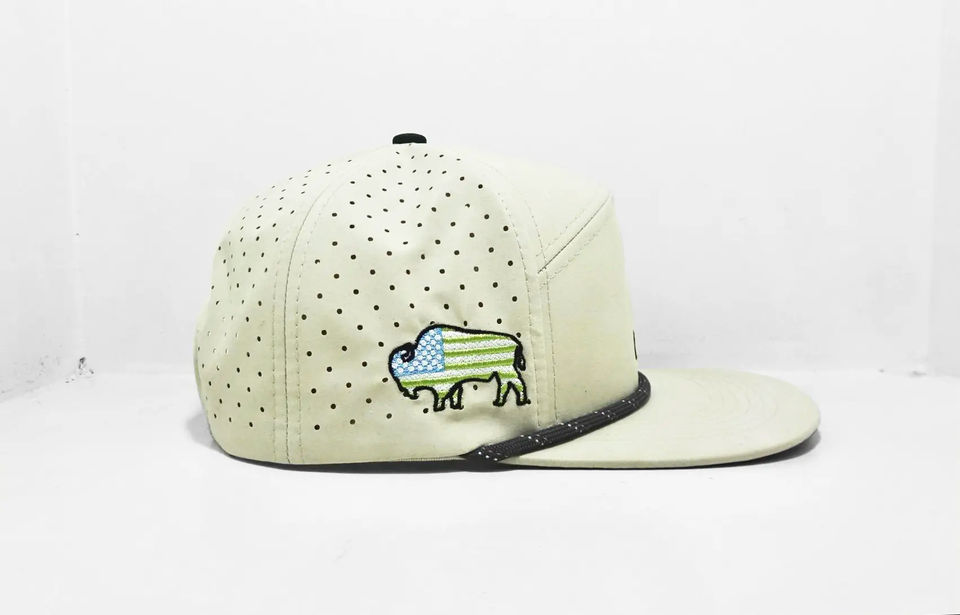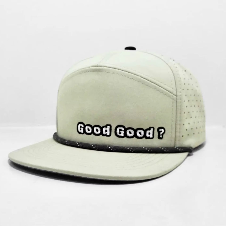 Gorra Snapback de 7 Paneles con Logotipo Bordado Personalizado, Impermeable, Transpirable, de Poliéster, con Cuerda, Visera Plana, Unisex, con Orificios Traseros