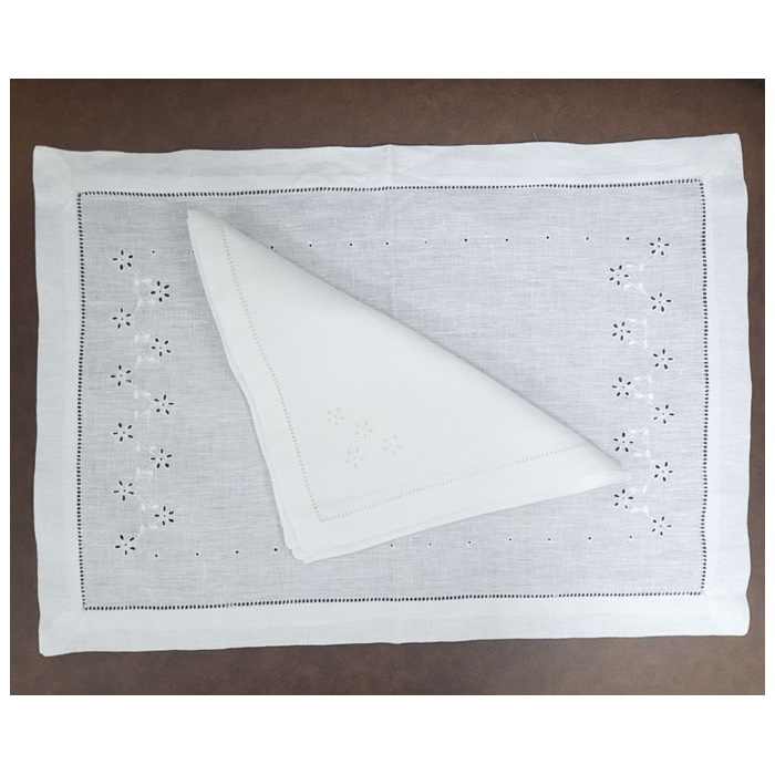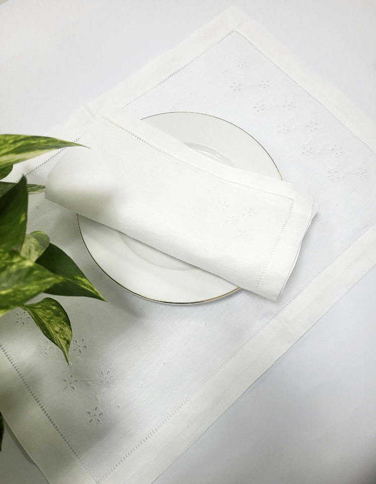 Conjunto de manteles individuales y servilletas para el hogar, juego de manteles pequeños de lino blanco con bordado personalizado, para restaurante, boda, costura de dobladillo