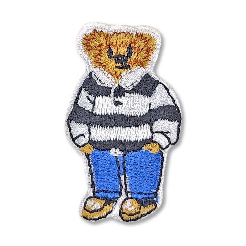 Parche bordado personalizado para uso diario, gorra estilo polo, sombrero de pescador lavado a la moda con oso de peluche a rayas azules y blancas