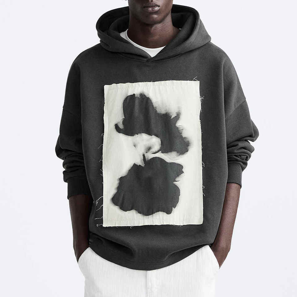 Parche bordado personalizado peso pesado 500 GSM DTG impresión Sudadera con capucha de gran tamaño en blanco 100% algodón hombres sudaderas con capucha