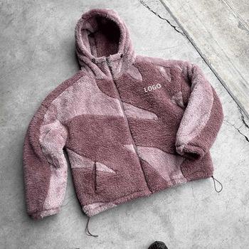 Sudadera con capucha para hombre de forro polar Sherpa esponjoso con cremallera completa, con diseño de bloques de color y patchwork, y parches de logotipo bordados personalizados, con diseño de máscara facial
