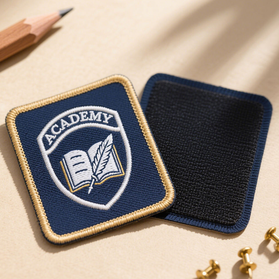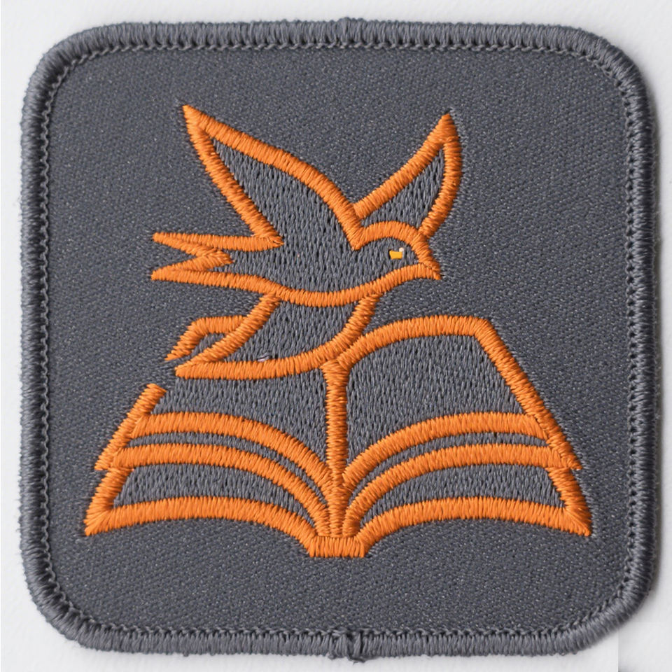 Parches Bordados Personalizados Rectangulares Gris Oscuro Diseño de Pájaro y Libro Ecológicos Forma de Corazón para Hombre y Mujer