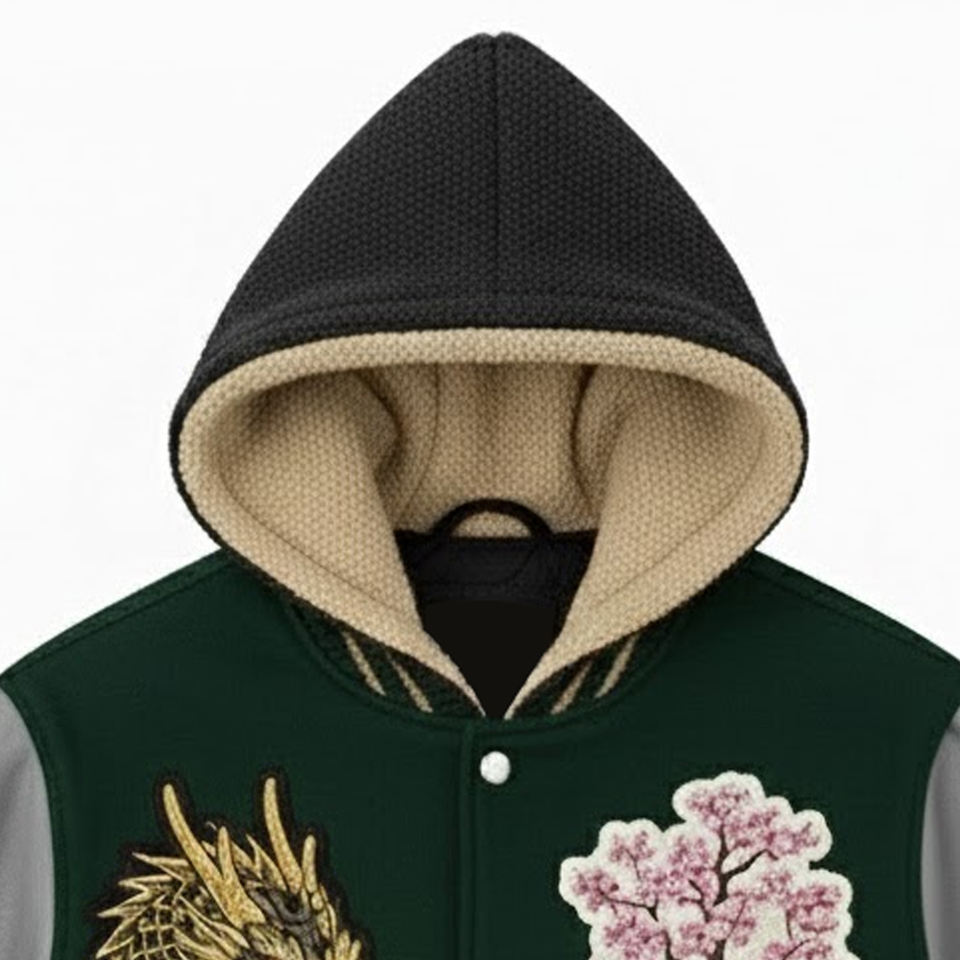 Chaquetas Varsity con Parches Bordados Personalizados para Hombre, Proveedor Directo de Fábrica, Ropa Casual, Chaquetas Varsity con Capucha para Hombre