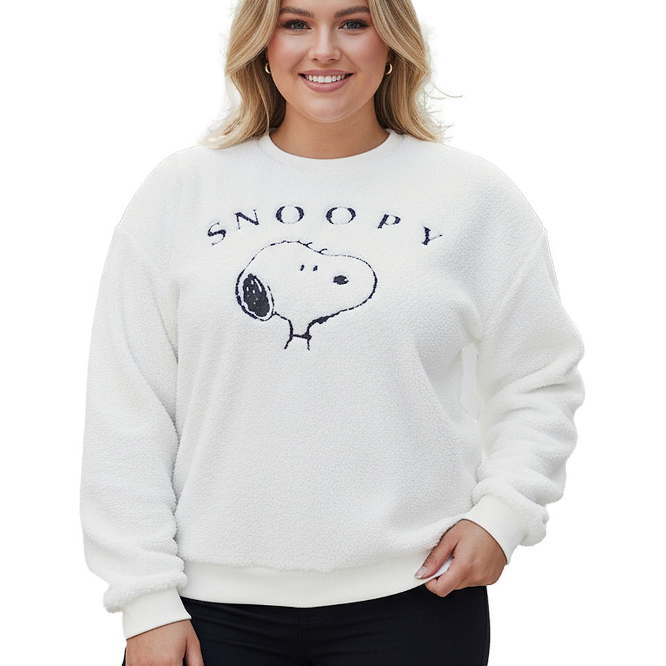 Sudaderas de cuello redondo de forro polar Sherpa de poliéster con bordado personalizado, hombros caídos, talla grande, para mujer, ropa de invierno oversize