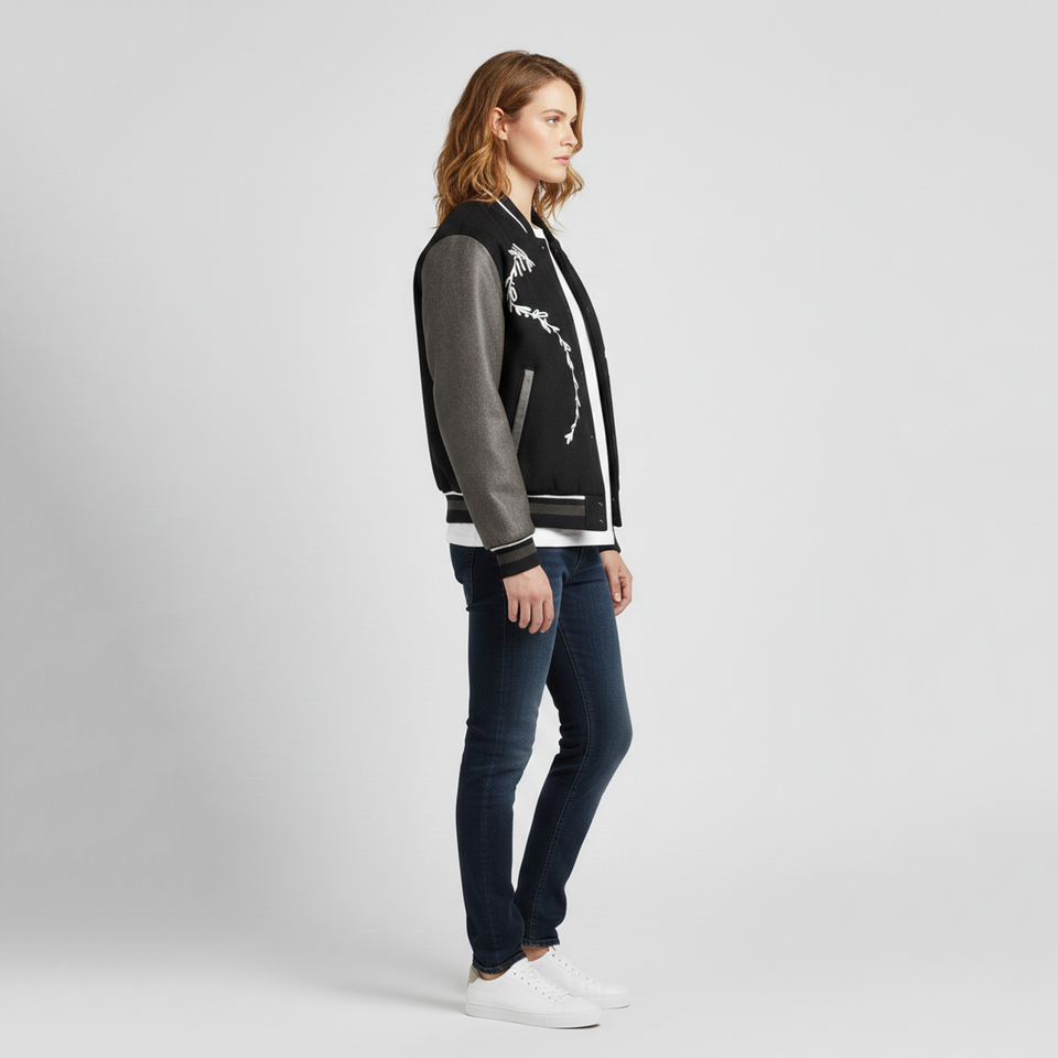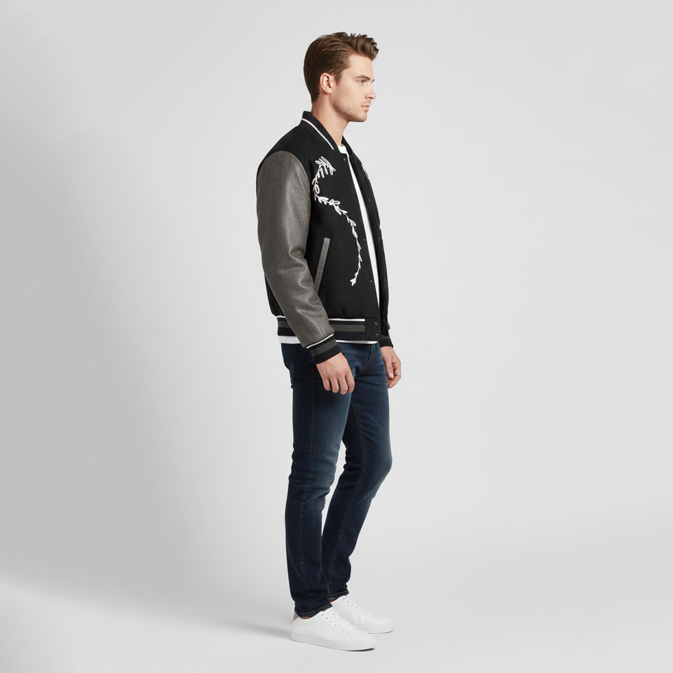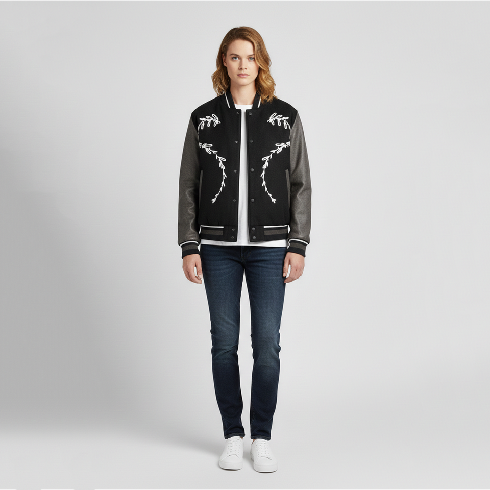 Chaqueta Varsity con Bordado Personalizado, Chaqueta de Alta Calidad con Mangas de Cuero y Lana para Uso Casual o Deportivo, Chaqueta Varsity Unisex