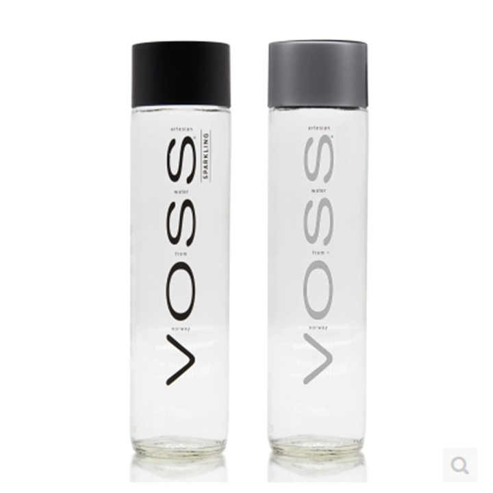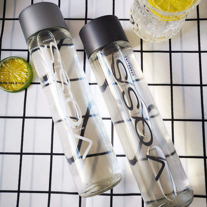 Botella de agua de jugo de vidrio Voss vacía personalizada de 16 oz, 500ml, 250ml, 300ml, capacidad con tapón de rosca para embalaje