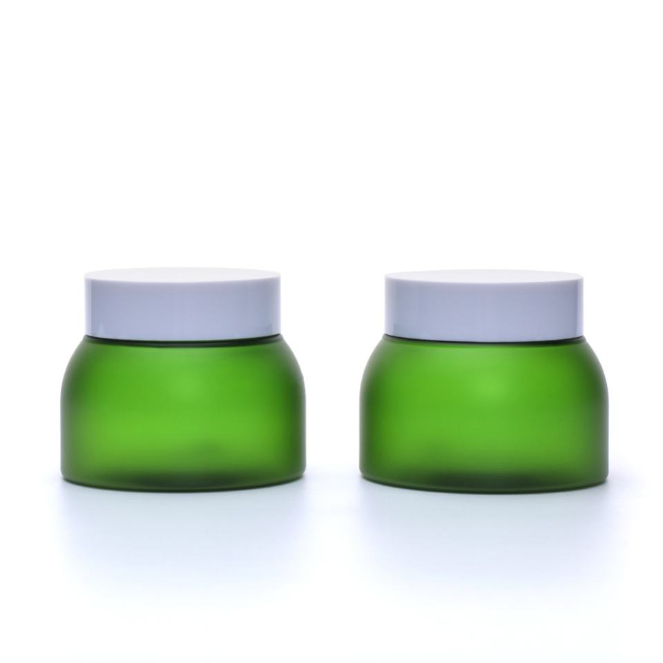 Envase Redondo Esmerilado de Doble Pared Personalizado, Frasco de Plástico PET Verde de 50g 100g con Tapa para Cosméticos, Cuidado de la Piel y Crema Facial