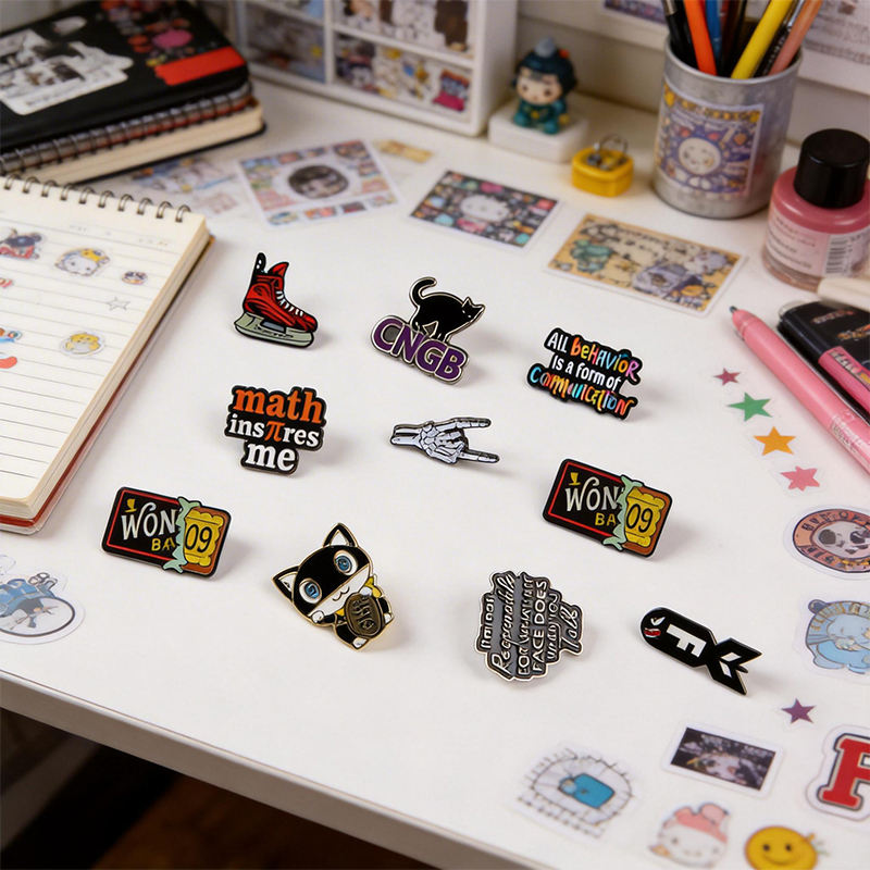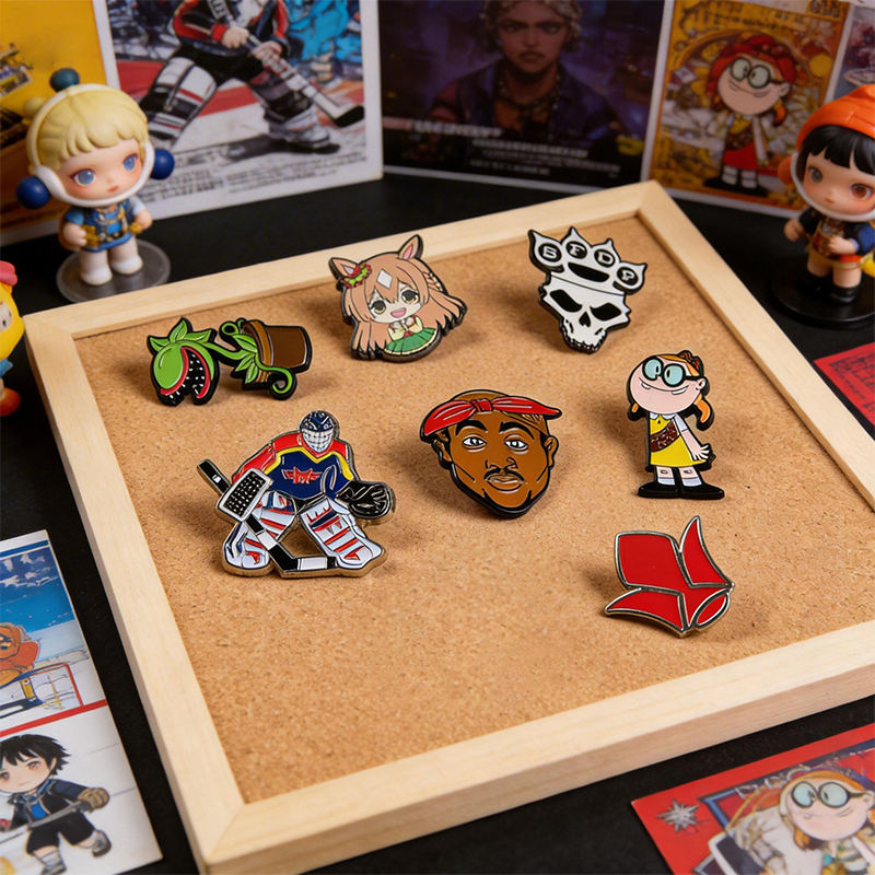 Pins de solapa de esmalte personalizados con logo, divertidos, de esmalte duro, insignias de metal con temática de anime, insignias a granel