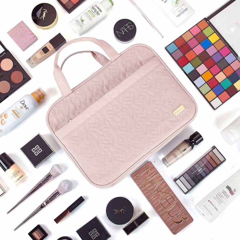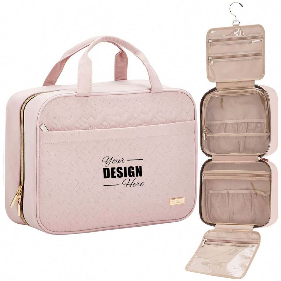 Estuche de Viaje de Poliéster Estilo Inglés Personalizado para Mujer, Organizador Colgante Grande con Cierre de Cremallera, Accesorios de Maquillaje y Artículos de Aseo de Tamaño Completo