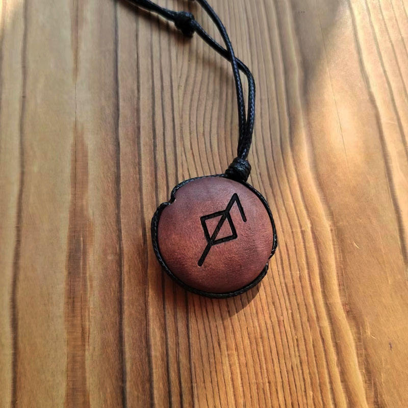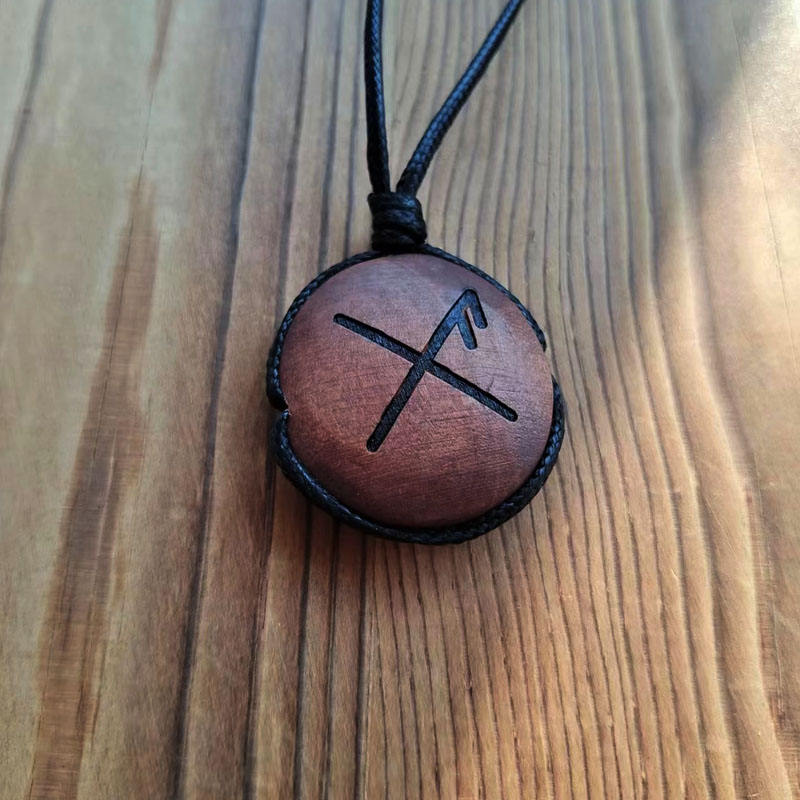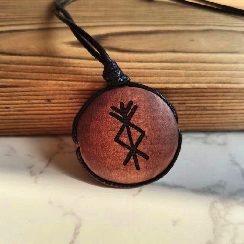 Collar con colgante de cuentas grabado personalizado, Runa nórdica vikinga, cadenas de madera hechas a mano, collar de madera