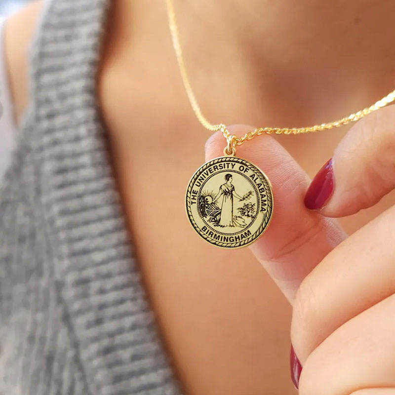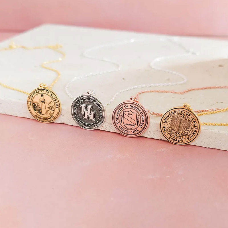 Collar con Colgante de Graduación Personalizado con Grabado Geométrico, Chapado en Oro de 14K/18K, Cadena de Eslabones de Latón, Regalo de Joyería Universitaria Unisex
