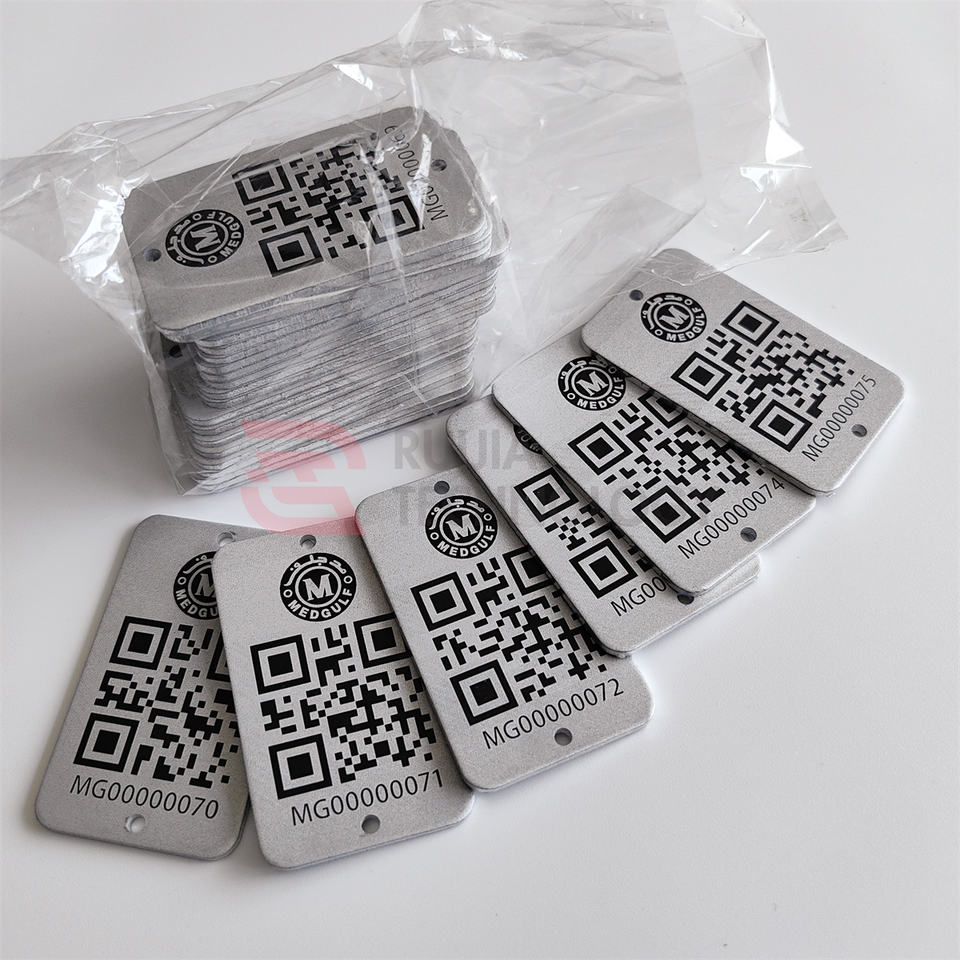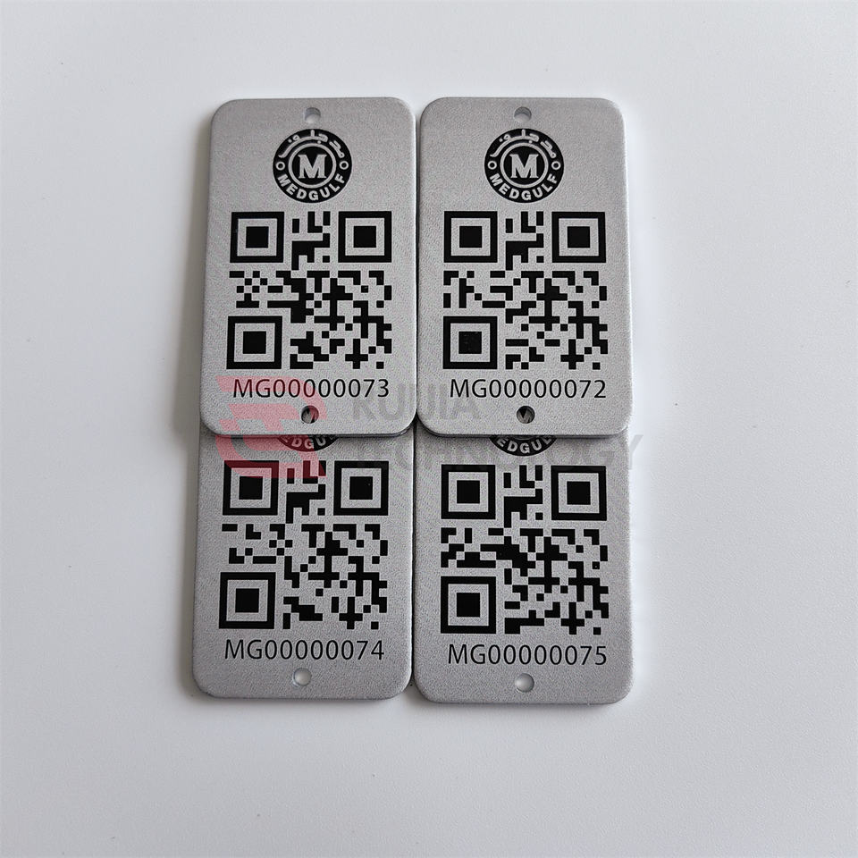 Etiquetas de Código QR de Metal Grabadas Personalizadas con Números de Serie, Muestra Gratuita, MOQ Bajo, Etiqueta de Código QR de Metal Personalizada