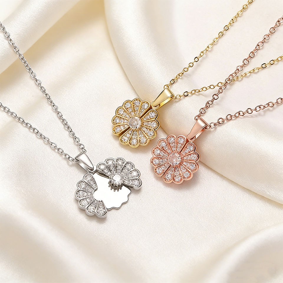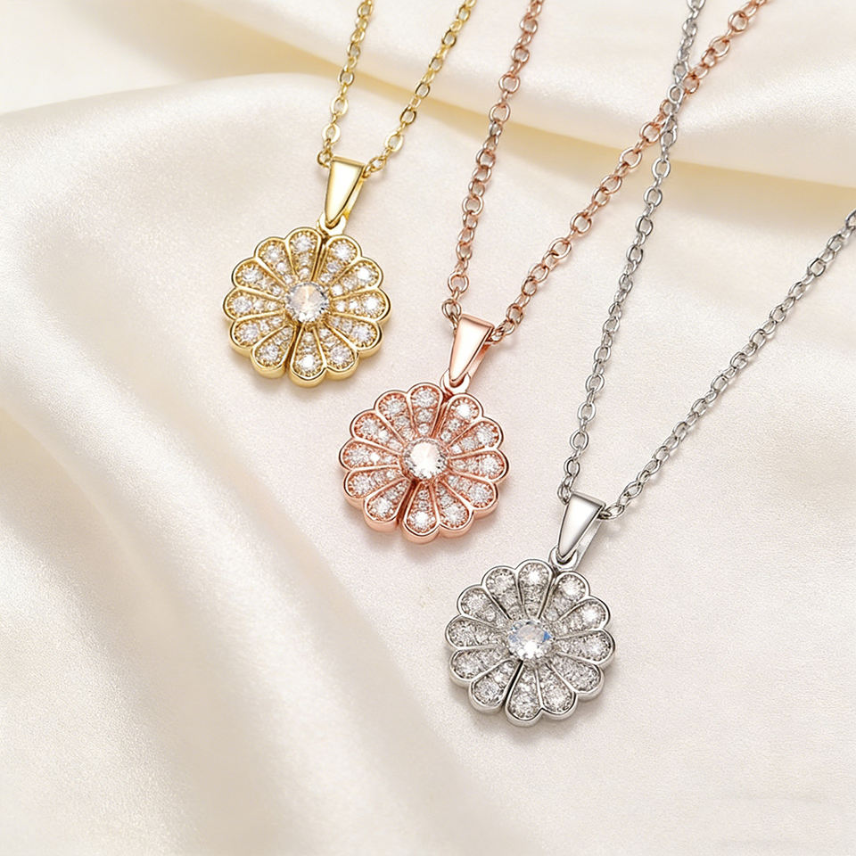 Collar con Colgante de Margarita con Nombre Grabado Personalizado, Collar de Flores de Lujo con Incrustaciones Abrible para Mujer, Regalo de San Valentín, Cumpleaños o Aniversario