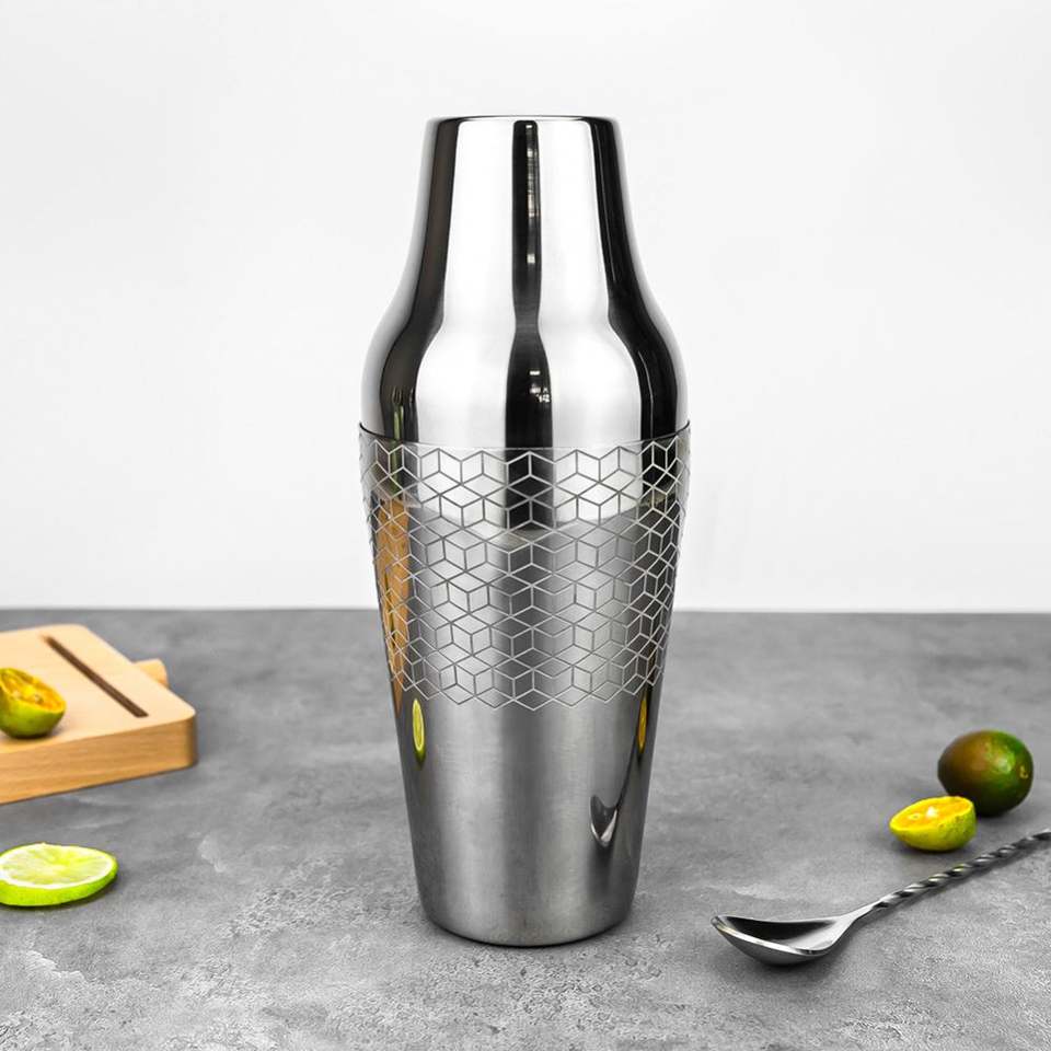 Coctelera Francesa de Dos Piezas de Acero Inoxidable de 600 ml con Patrón Grabado Personalizado, Coctelera Parisina para Martini