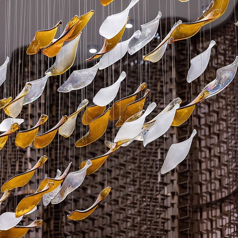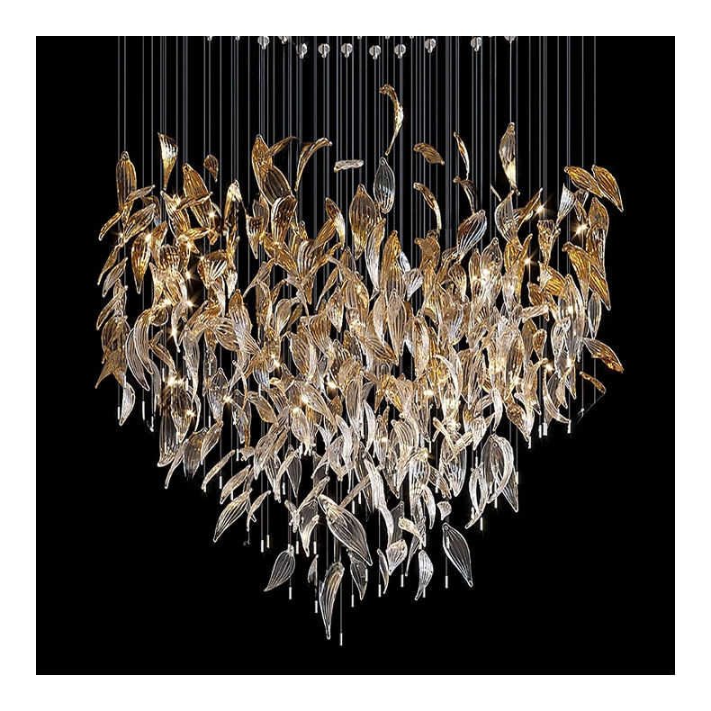 Lámpara de Araña de Cristal Estilo Europeo Personalizada, Hojas Caídas de Cristal Ámbar, para Proyectos Grandes, Hoteles, Villas, Salones, Moderna y Clásica