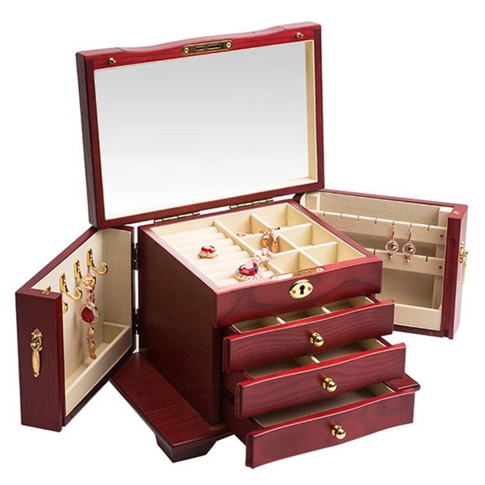 Personalizado de moda de estilo europeo atractivo diseño de madera de la joyería caja de almacenamiento con cerradura