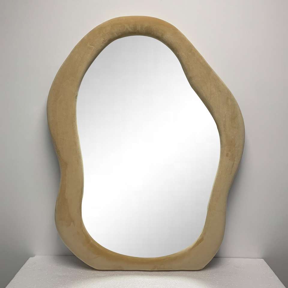 Espejo de Cuerpo Entero Estilo Europeo Personalizado, Espejo Decorativo de Pared con Marco Ondulado de Franela para Vestidor