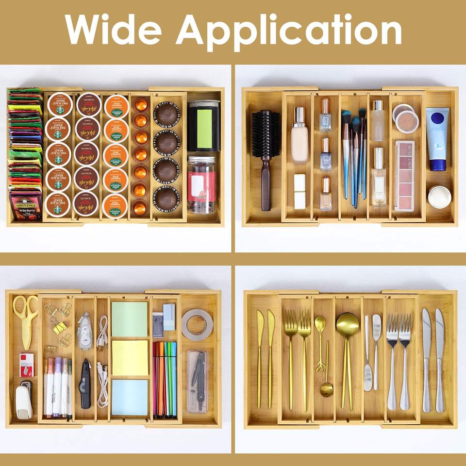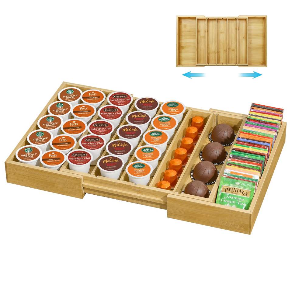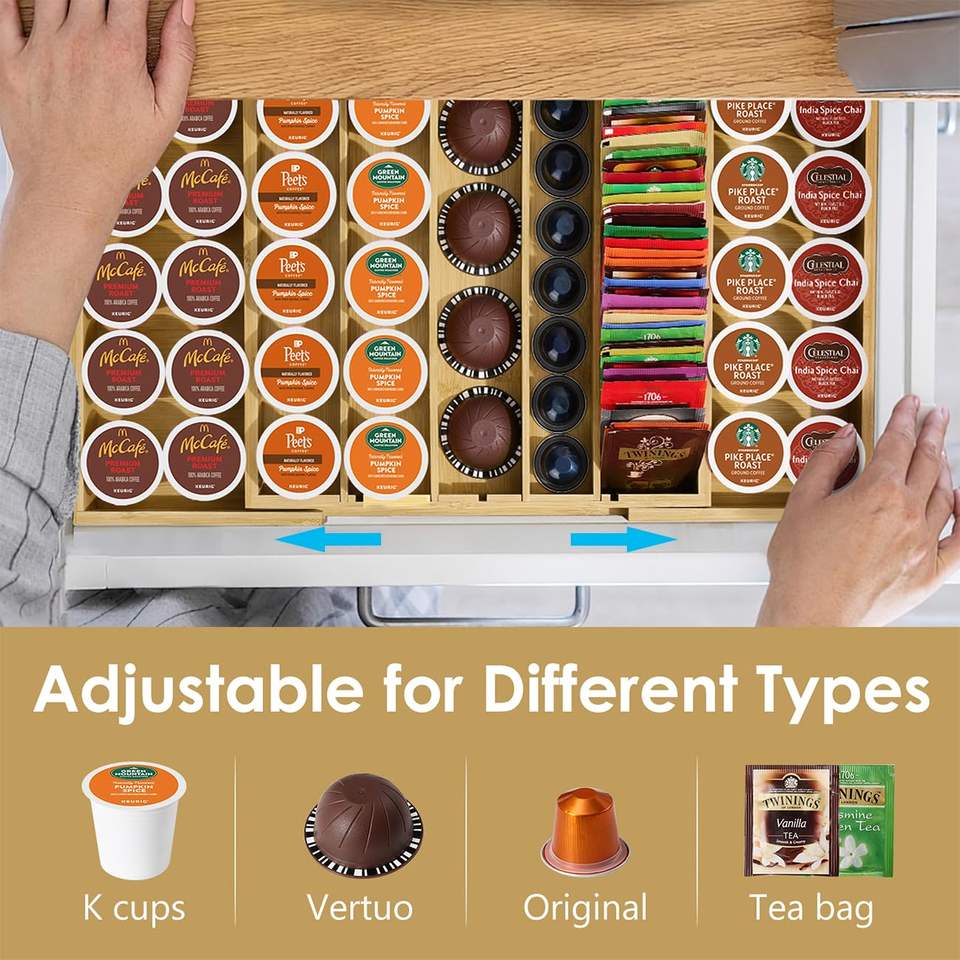 Portavasos de bambú extensible personalizado, divisores extraíbles, cajón de cápsulas de café de madera para Estación de café, uso en encimera para barra de café