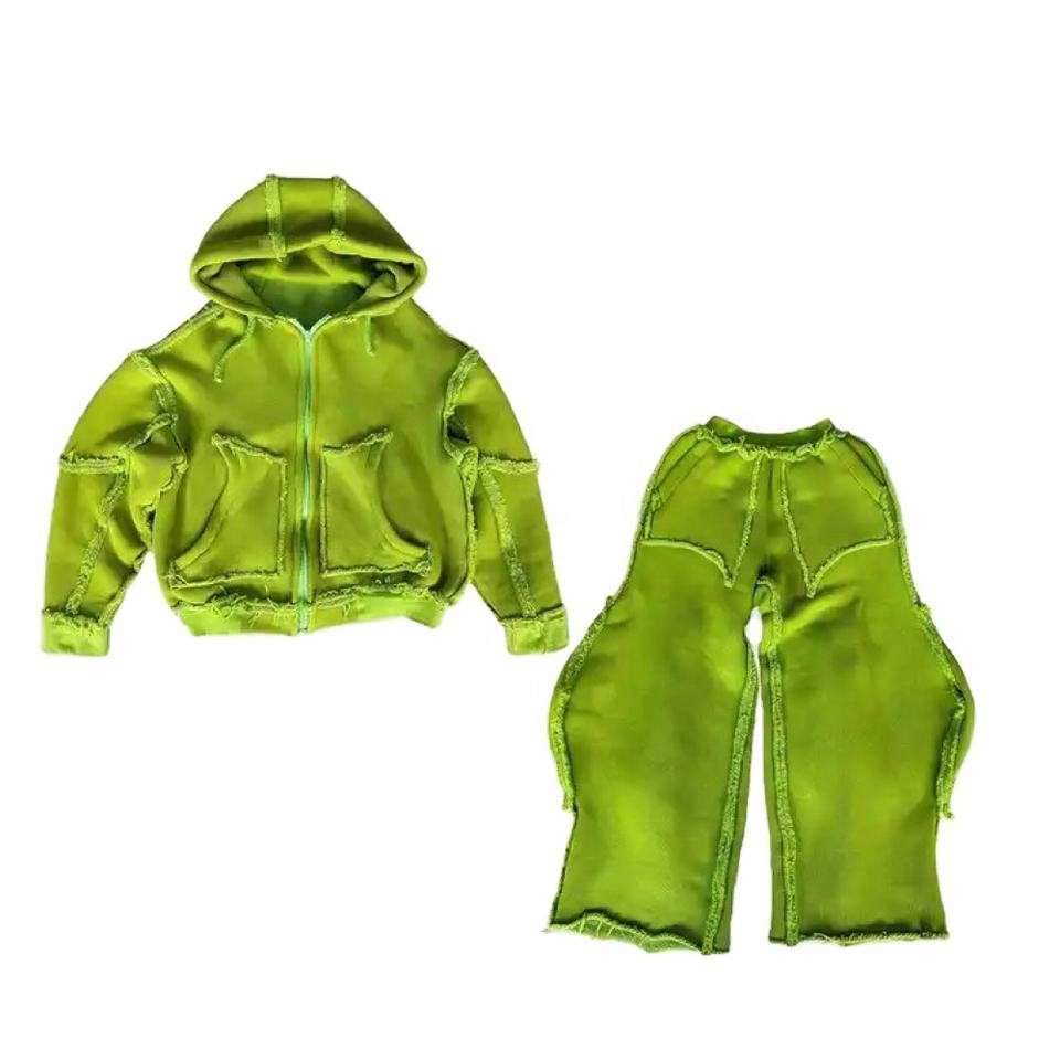 Conjunto Deportivo Personalizado con Costuras Expuestas y Cremallera, Sudadera con Capucha y Pantalones Deportivos a Juego, Ropa Deportiva Urbana para Hombre, Chándal de Invierno Estampado 100% Algodón