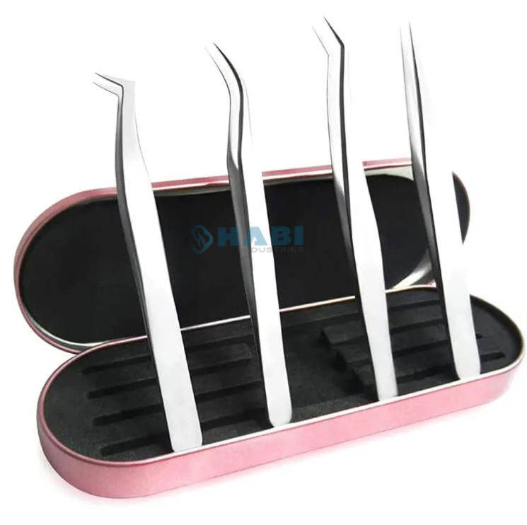 Juego de pinzas de extensión de pestañas personalizadas, 4 piezas, pinzas de pestañas curvas fuertes de acero inoxidable para recoger e injertar herramientas de belleza