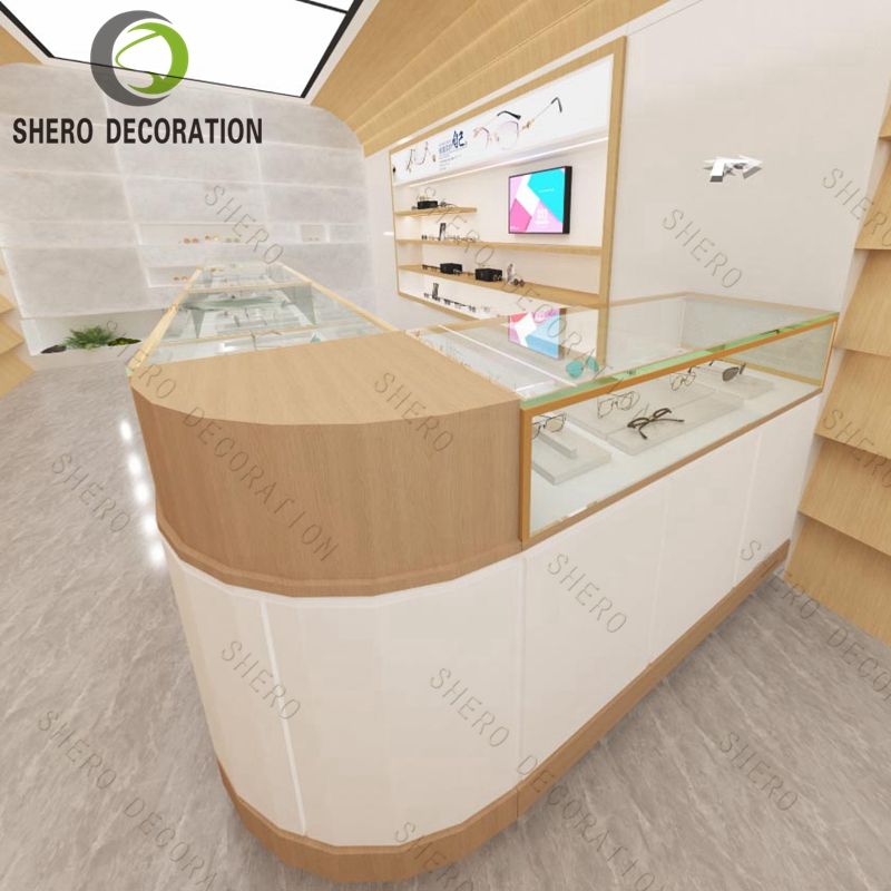 Mostrador de exhibición de gafas de sol de madera - Diseño personalizado de tienda de gafas