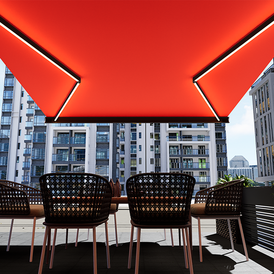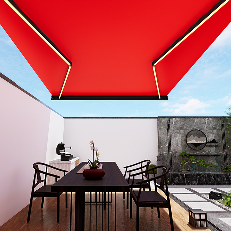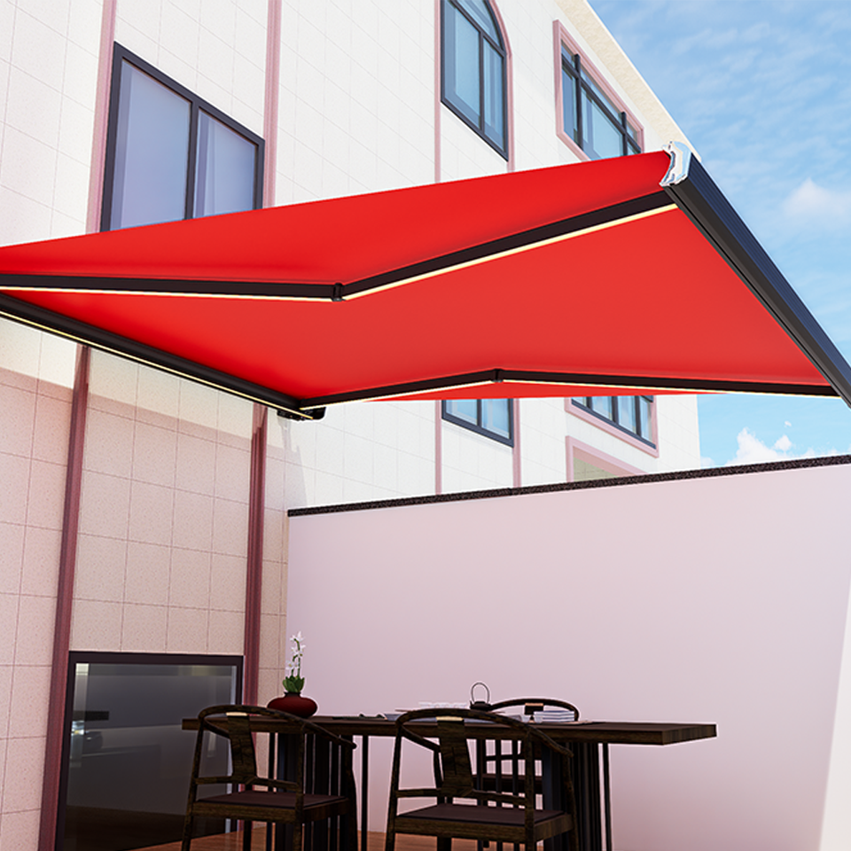 Toldo Mecánico Extensible de Tela Personalizada, Toldo Retráctil Automático Horizontal con Luces LED