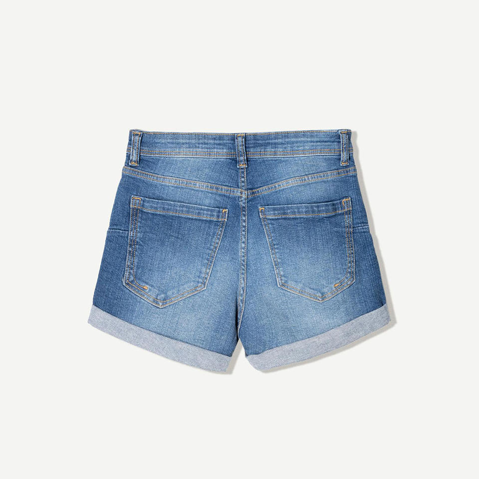 Tela personalizada de alta calidad de la ropa de mezclilla de las mujeres azules de mezclilla Casual Slim Fit pantalones cortos de mezclilla Jeans