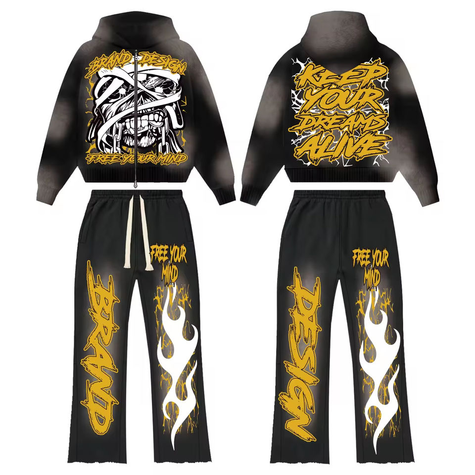 Conjunto de Chándal de Algodón Antibacteriano Ecológico Sólido Personalizado de Fábrica, Sudadera Gruesa con Cremallera y Pantalones Acampanados con Estampado Serigrafiado