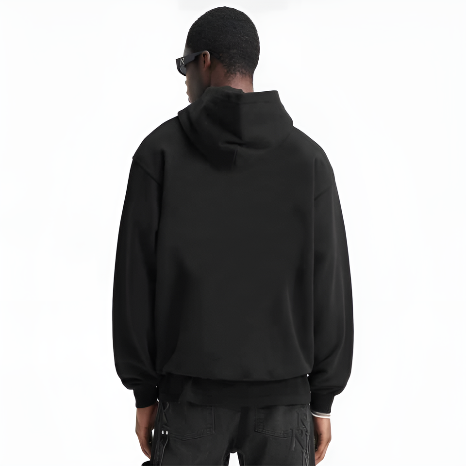 Sudadera con capucha negra personalizada de fábrica con estampado completo para hombre, 100% algodón, felpa francesa, sudadera deportiva con estampado completo.