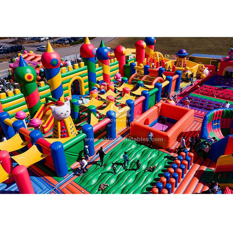 Parque de atracciones temático inflable de dibujos animados de fábrica personalizado parque de juegos de Ciudad de diversión inflable al aire libre Big Funland para la venta