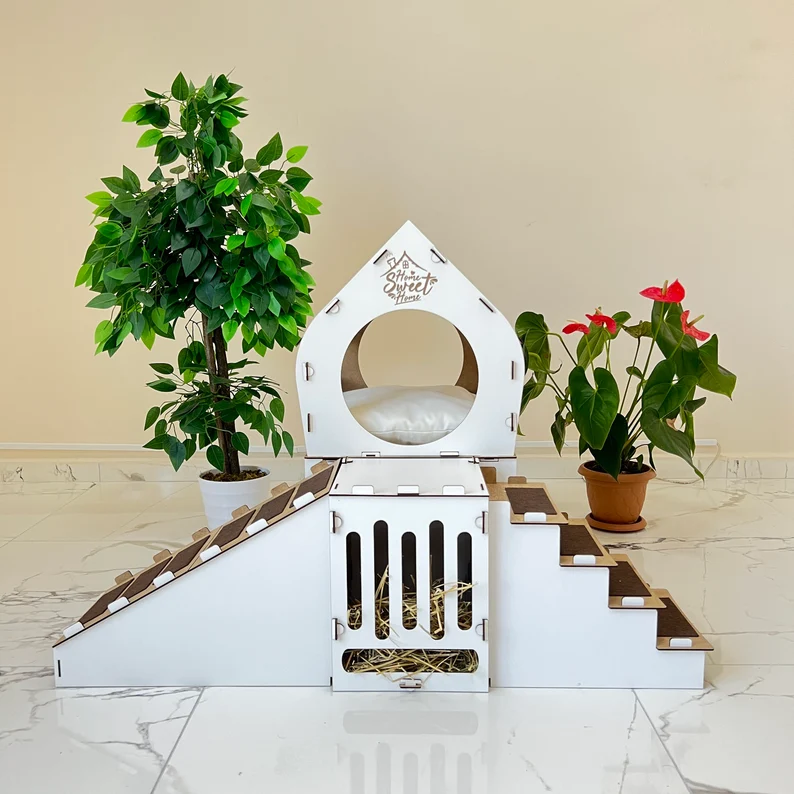 Casa para Conejos de Madera de Pino Ecológica de Fábrica Personalizada, Castillo para Mascotas de Dos Pisos con Forma de Árbol para Gatos