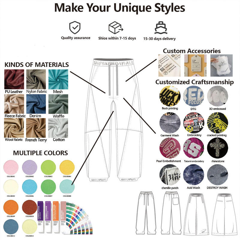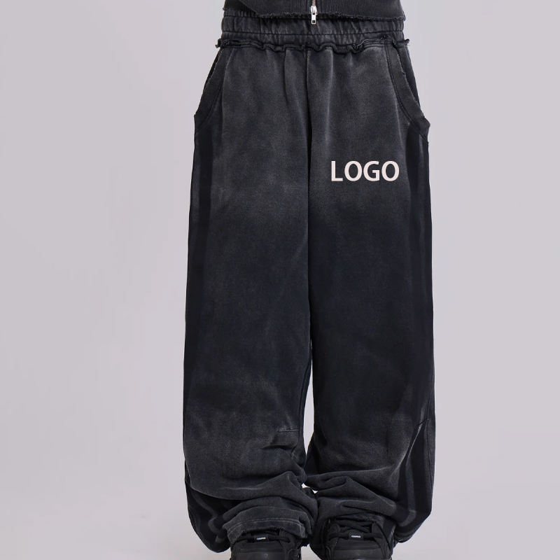 Pantalones Deportivos Holgados de Felpa Francesa de Alta Calidad para Hombre, Personalizables con Logotipo, Disponibles en Negro Lavado