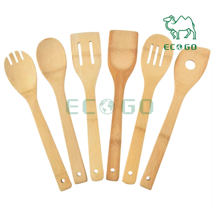 Juego de utensilios de cocina de bambú de Venta caliente de fábrica personalizada, juego de 6 piezas para uso en cocina
