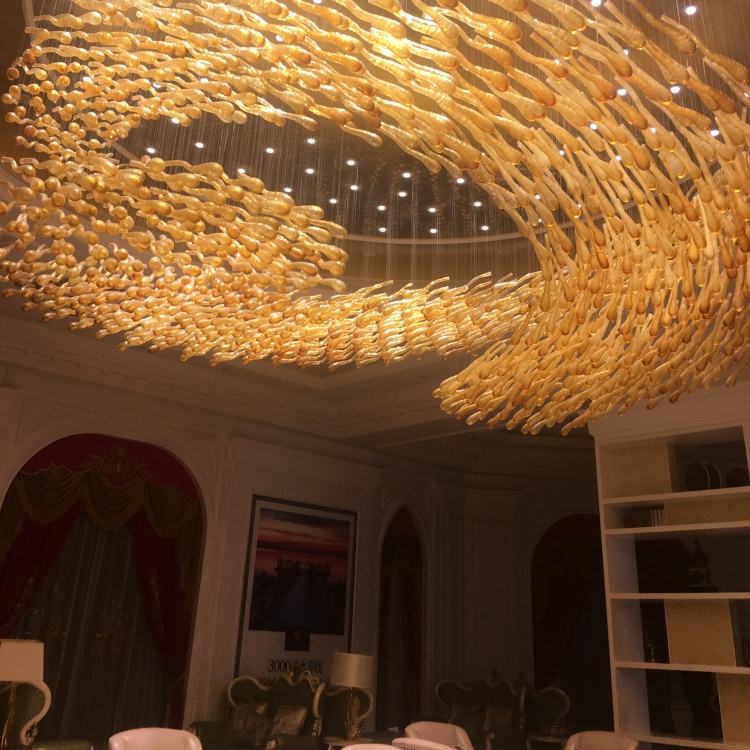 Lámpara colgante de cristal grande de fábrica personalizada, lámparas decorativas de escamas de pescado huecas para restaurante, salón de banquetes, decoraciones de Hotel