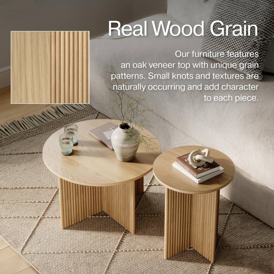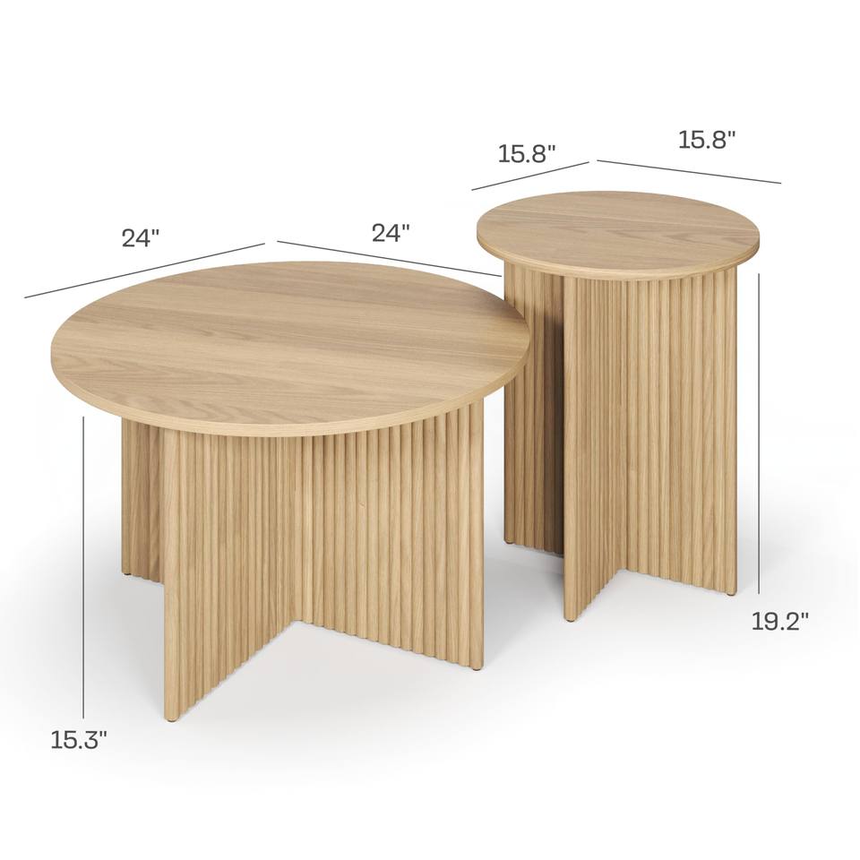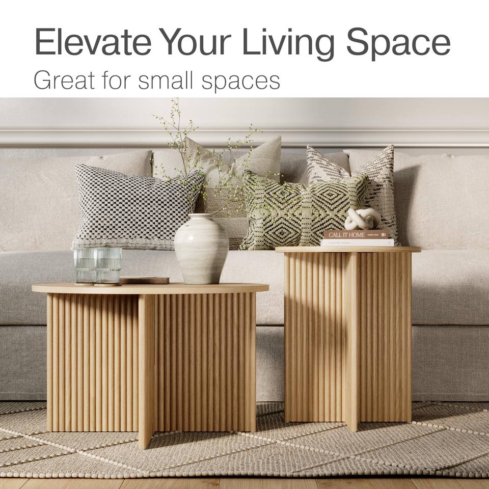 Estante para sala de estar de fábrica personalizado, decoración moderna para el hogar, estante de madera acentuado, estante de café anidado estriado redondo de madera