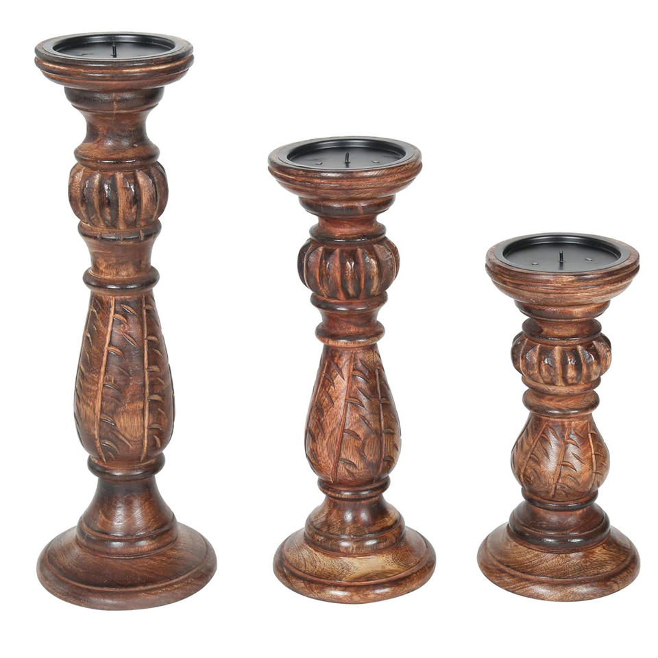 Juego de 3 candelabros de madera antiguos tallados a mano hechos de fábrica personalizados a un precio asequible para vendedores en línea