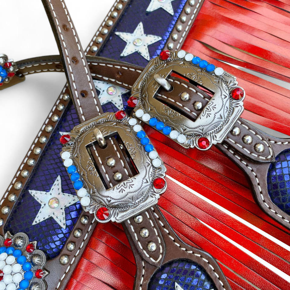 Western Horse USA Flag Fringe Headstall & Breastplate JuegoNombre del producto