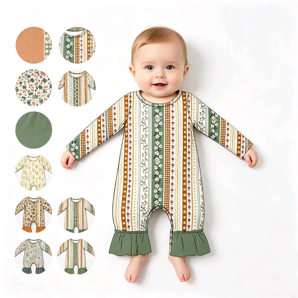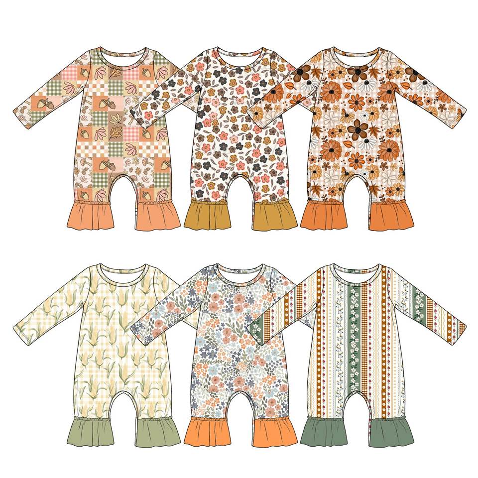 Ropa Infantil Personalizada con Estampado de Flores Otoñales, 95% Algodón, 5% Elastano, Pijama para Bebés Niñas, Ropa de Dormir Linda al por Mayor para Recién Nacidos