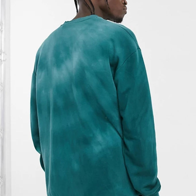 Jersey de otoño personalizado, sudaderas con capucha de dos tonos, verde claro, lavado con ácido, hombros caídos, acanalado, cuello redondo, tinte de corbata, sudadera para hombre