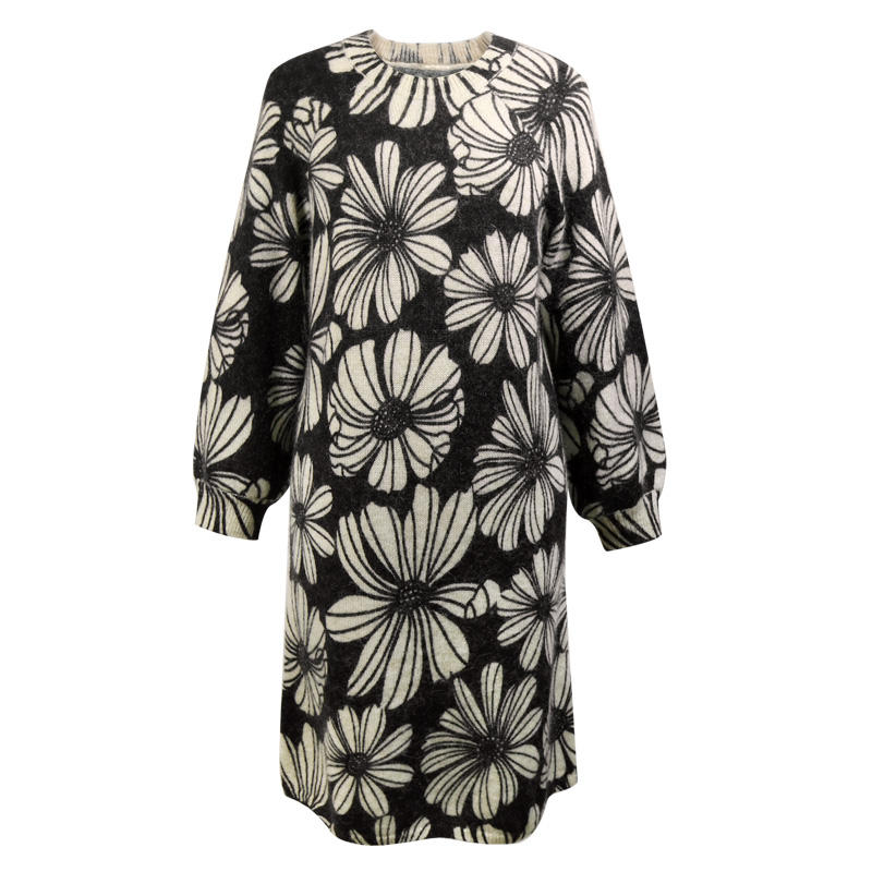 Vestido Floral De punto De manga larga personalizado para mujer para Otoño e Invierno silueta suelta con cintura Natural Vestido De Punto