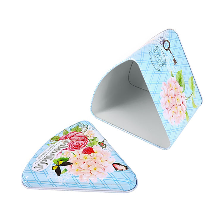 Contenedor de latas en forma de abanico personalizado Cajas de hojalata triangulares Regalo Chocolate Candy Packaging Can Triangle Fan Shaped Metal Tin Box