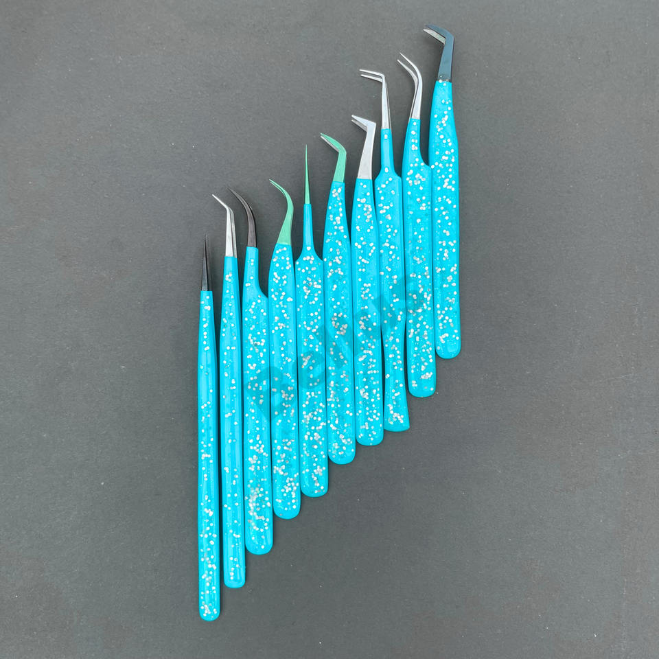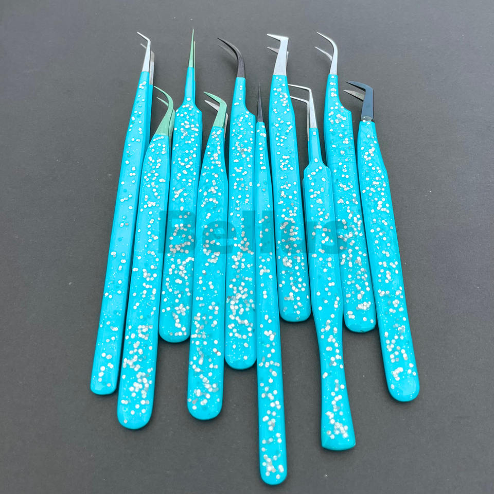Pinzas de pestañas de lujo personalizadas, herramienta de extensión de pestañas de Punta plateada, agarre profesional, acero sostenible, estilo único, diseño de pinzas de etiqueta privada