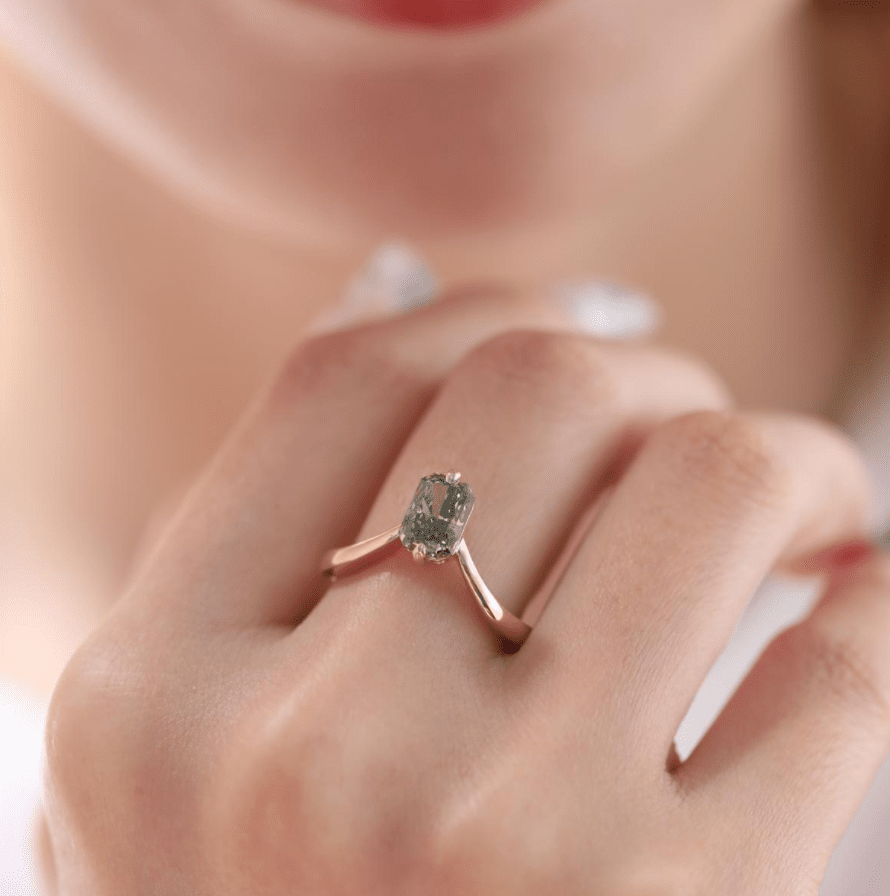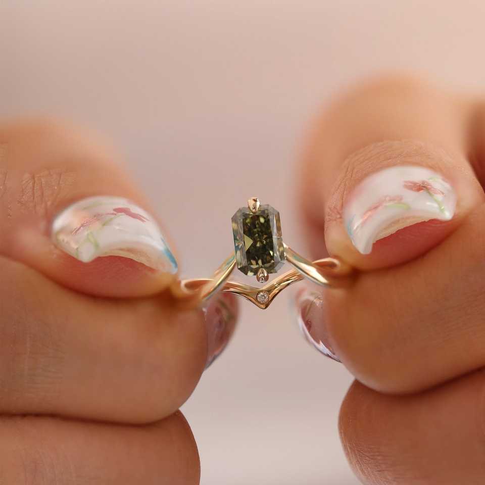 Anillo de Oro Real con Diamante Verde Intenso de 1.31 Quilates Creado en Laboratorio, Estilo Bosque, Engaste de Corona Sylvan, Hecho a Mano, Oculto, Color Personalizado