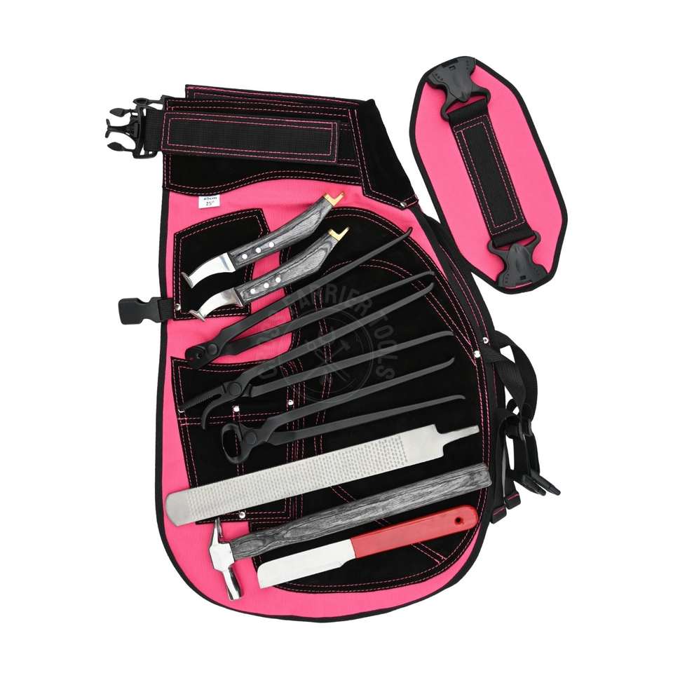 Palabras clave:Delantal de herrador rosa, corta cascos, engarzador de cascos