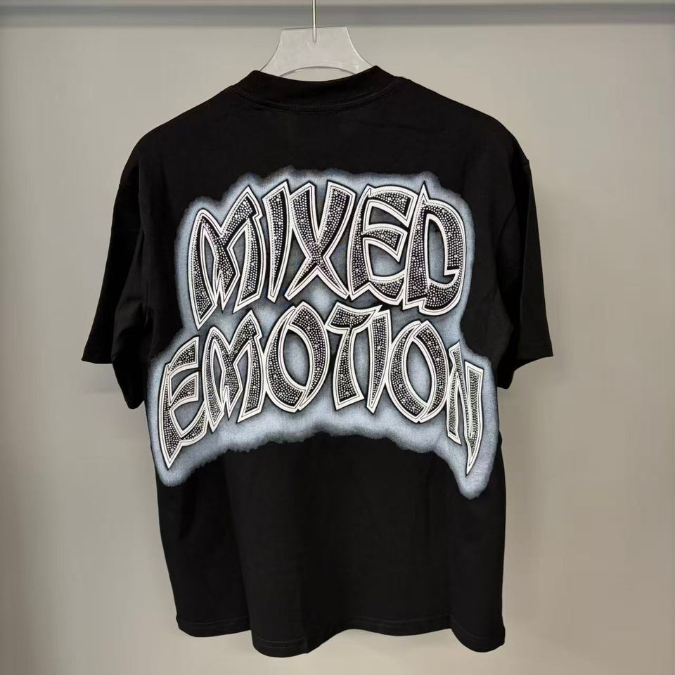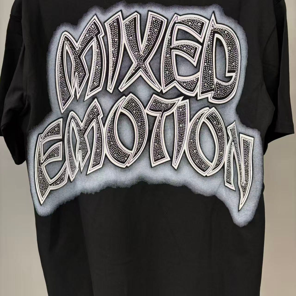 Camiseta de Diseño Personalizado con Estampado de Diamantes Mixtos, Estilo Retro Urbano, Unisex, de Alta Calidad, Talla Grande
