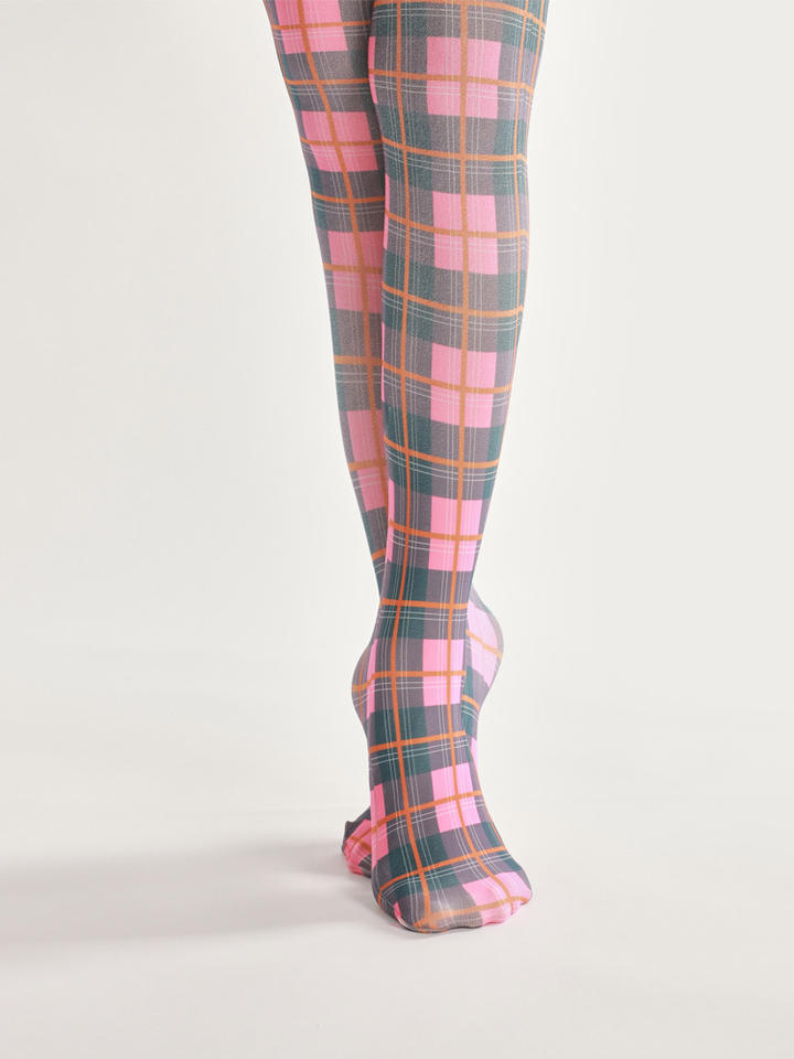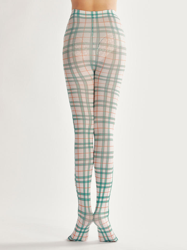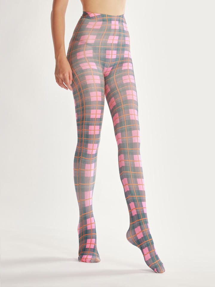 Medias con diseño de rejilla geométrica a la moda personalizada, medias de tartán a cuadros de estilo británico, pantimedias estampadas semiopacas encantadoras para mujer